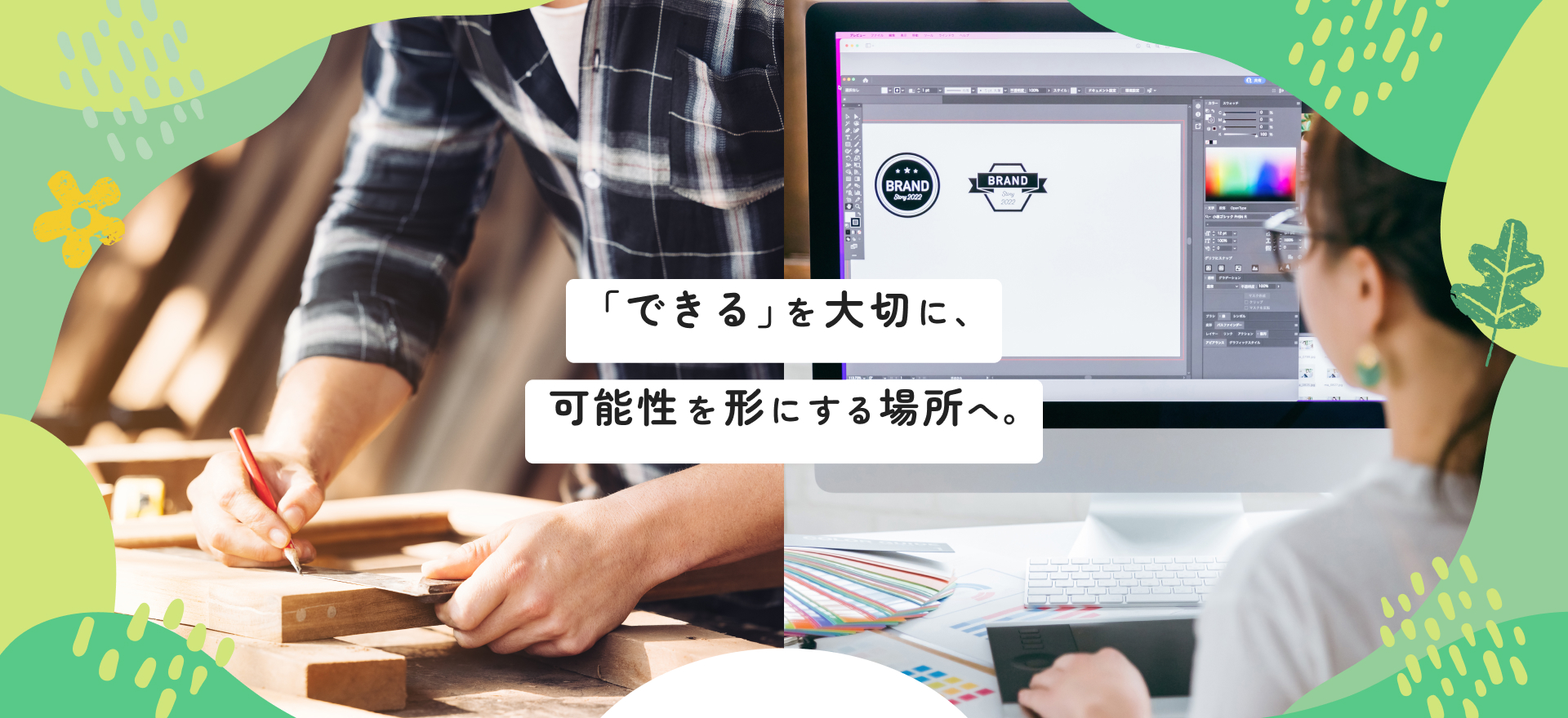 木工製造・Web制作・デザインなどの多彩な作業を通じて、社会とのつながりや